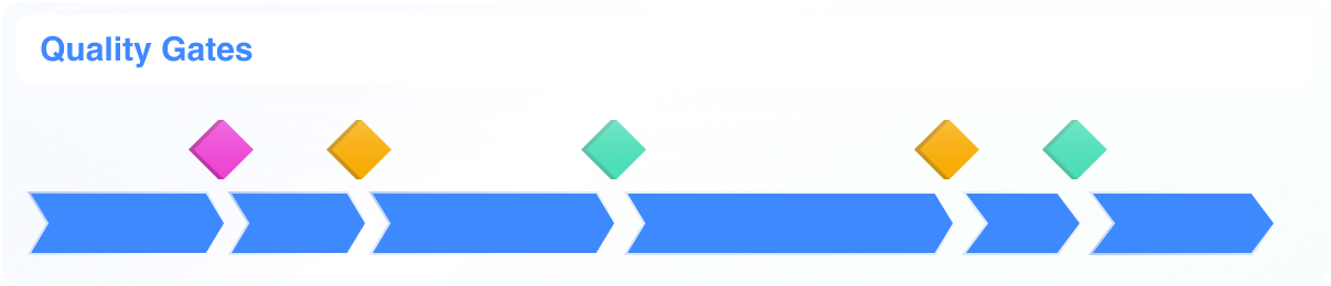 Quality Gates sind entscheidend, um sicherzustellen, dass der Projektfortschritt den festgelegten Qualitätsstandards entspricht. Sie definieren Punkte im Prozess, an denen überprüft wird, ob die Qualitätsanforderungen erfüllt sind.